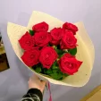 Роза красная 70 см - 7 шт, упаковка, лента. На фото представлен букет из 9 роз.